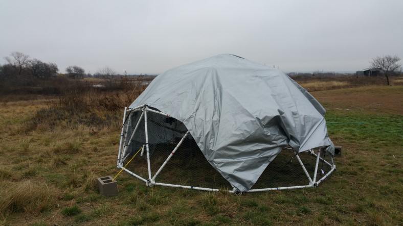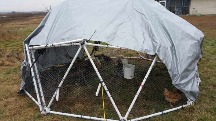 I just wanted to send you some pictures of the "Chicken Dome" after repairing the broken hubs (user error during wind storm if you recall), and winterizing the coop. I appreciate the free replacement hubs. I had forgotten how much easier it was to move the dome around when all the hubs are functioning properly. The chickens seem happy with it, and so am I!