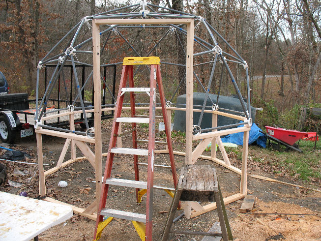 "Well, here is todays progress on the Chicken Dome Coop. 10 Foot dome on a 3 foot knee wall...